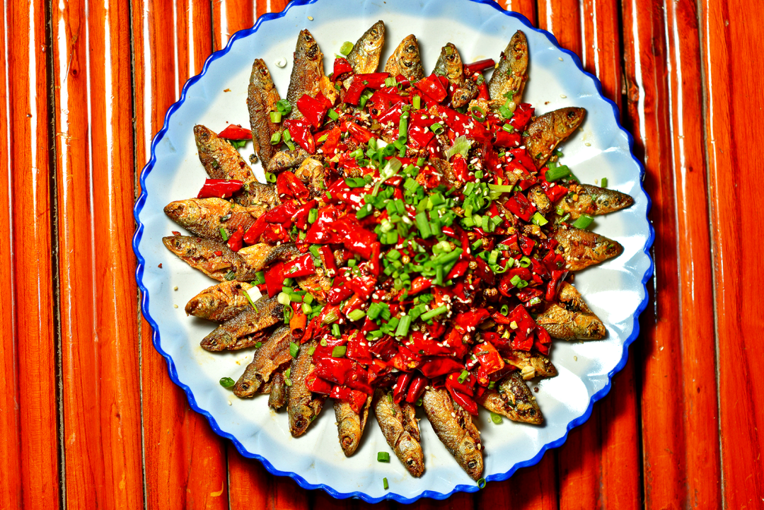 渣渣鱼也是一道广安名菜!注意,和渣渣辉没关系哦,“渣渣”在四川方言里是“小”的意思。渣渣鱼选材很多,如体型较小的大眼泡、船丁子、骨牌鱼、小鲫鱼等,做法以黄焖、干烧、红烧(麻辣)、煎炸为主,是休闲零食的首选!
