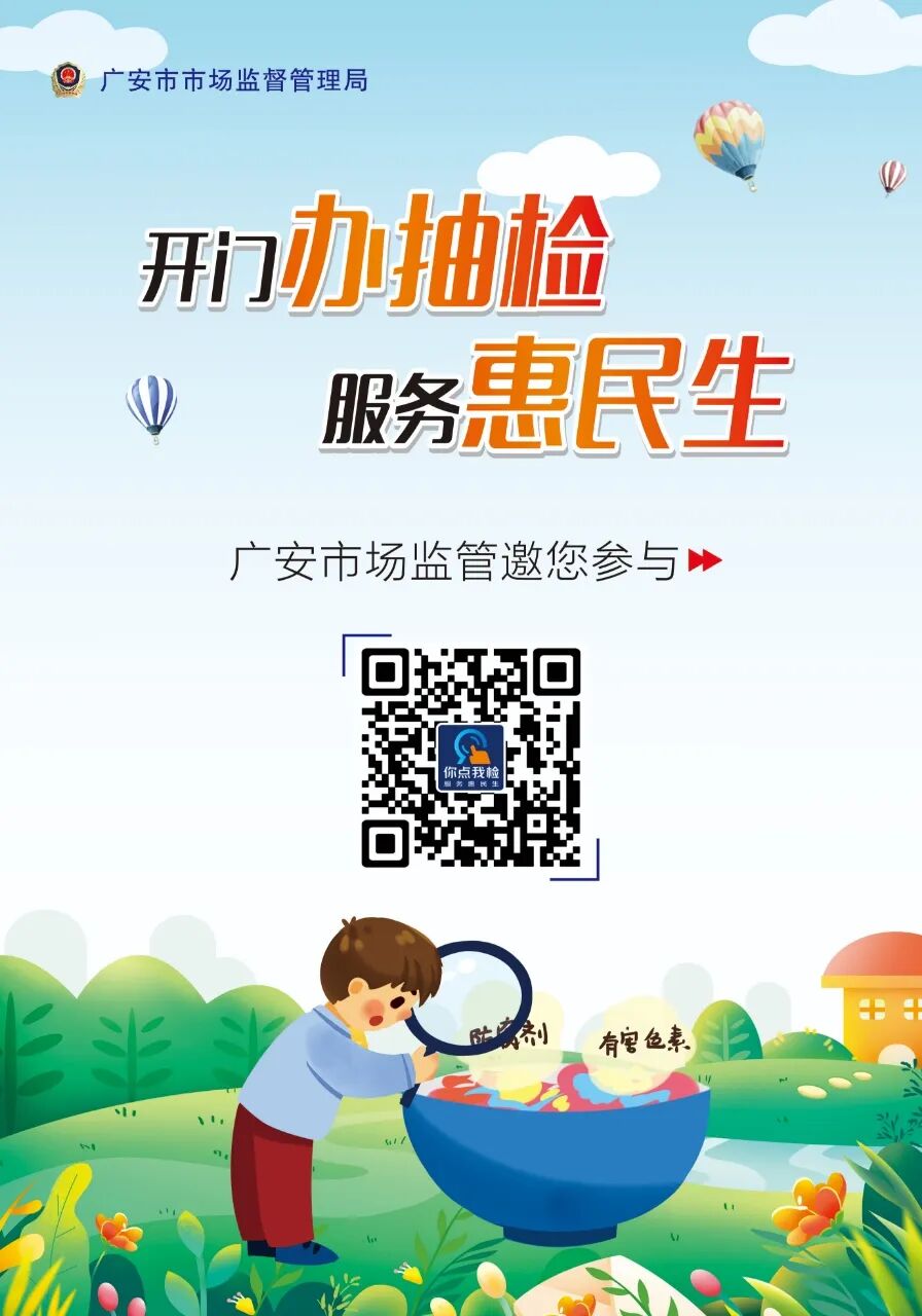 广安市市场监管局诚邀广大市民朋友参与食品安全“你点我检”活动,选出您最关心的食品品种,我们将组织抽检并公布结果,您的参与就是对食品安全最大的监督。