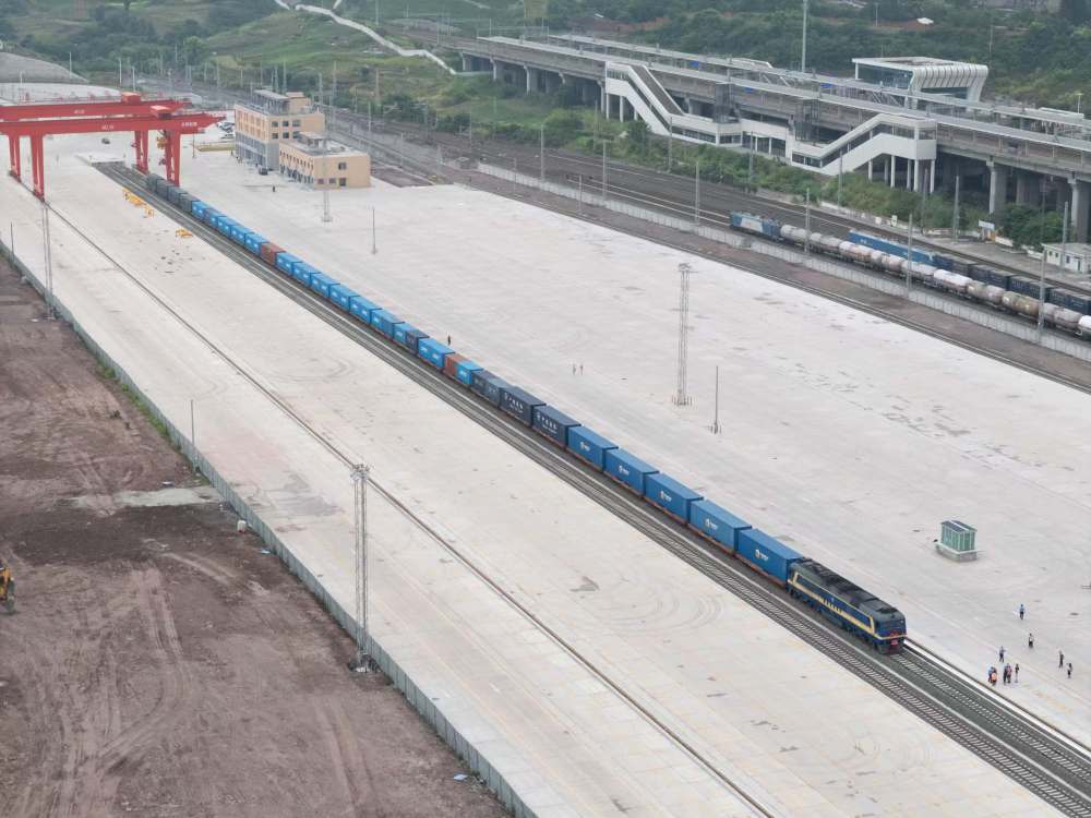 一列运载木薯淀粉的国际铁路班列停靠在内江国际物流港(资料照片)。 新华社发