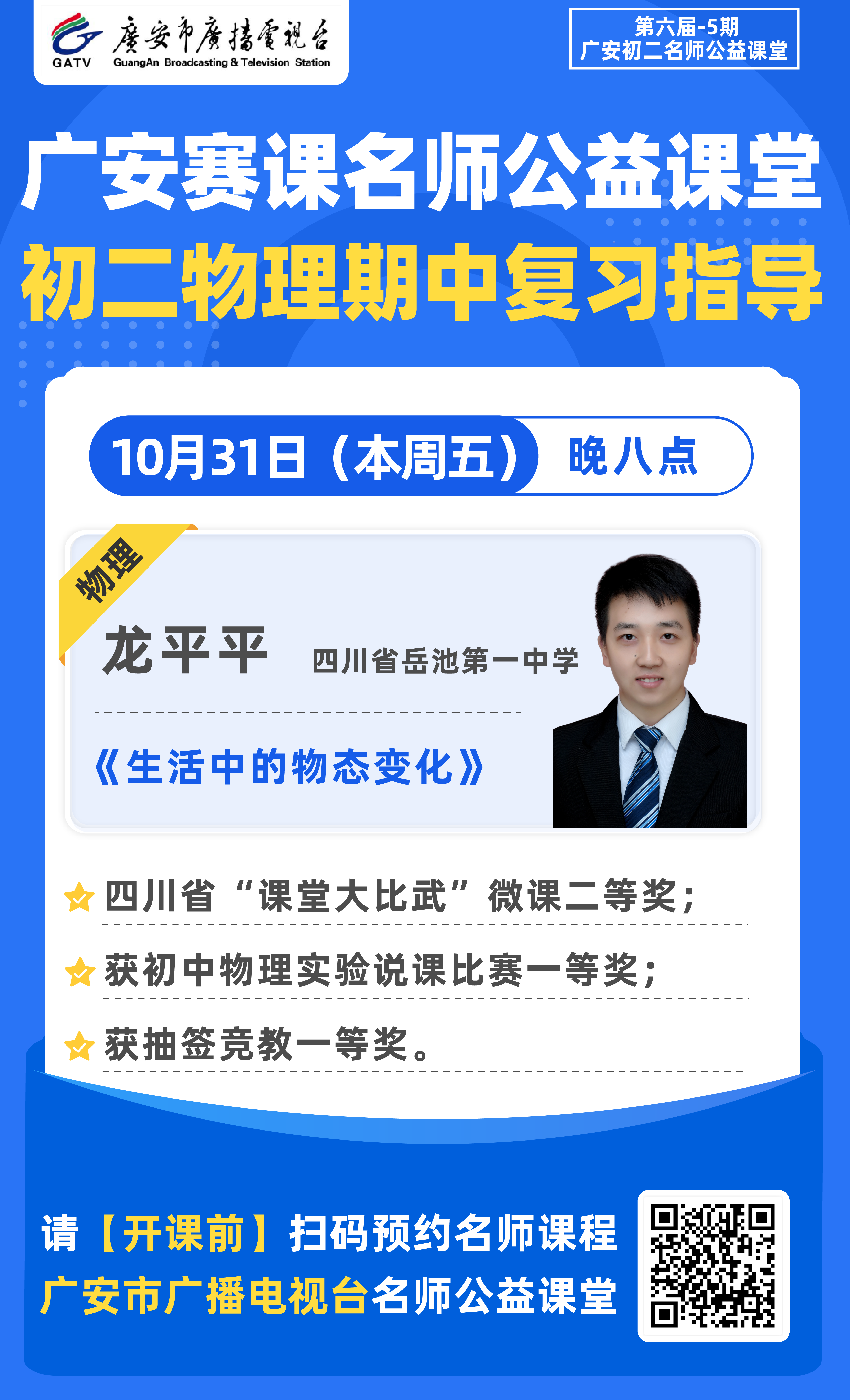 为助力广安学子共享更优质的教育,促进城乡教育均衡发展,广安市融媒体中心策划推出“广安名师公益课”大型教育公益直播活动,邀请广安义务教育阶段初级中学的教育家、名师及名师工作室团队成员作为公益直播主讲嘉宾,将广安市最优质的各科名师教学课程,通过远程直播的方式,传播给广大的中小学生及家长和教育同仁,从而发挥名师辐射作用,促进教育均衡发展。