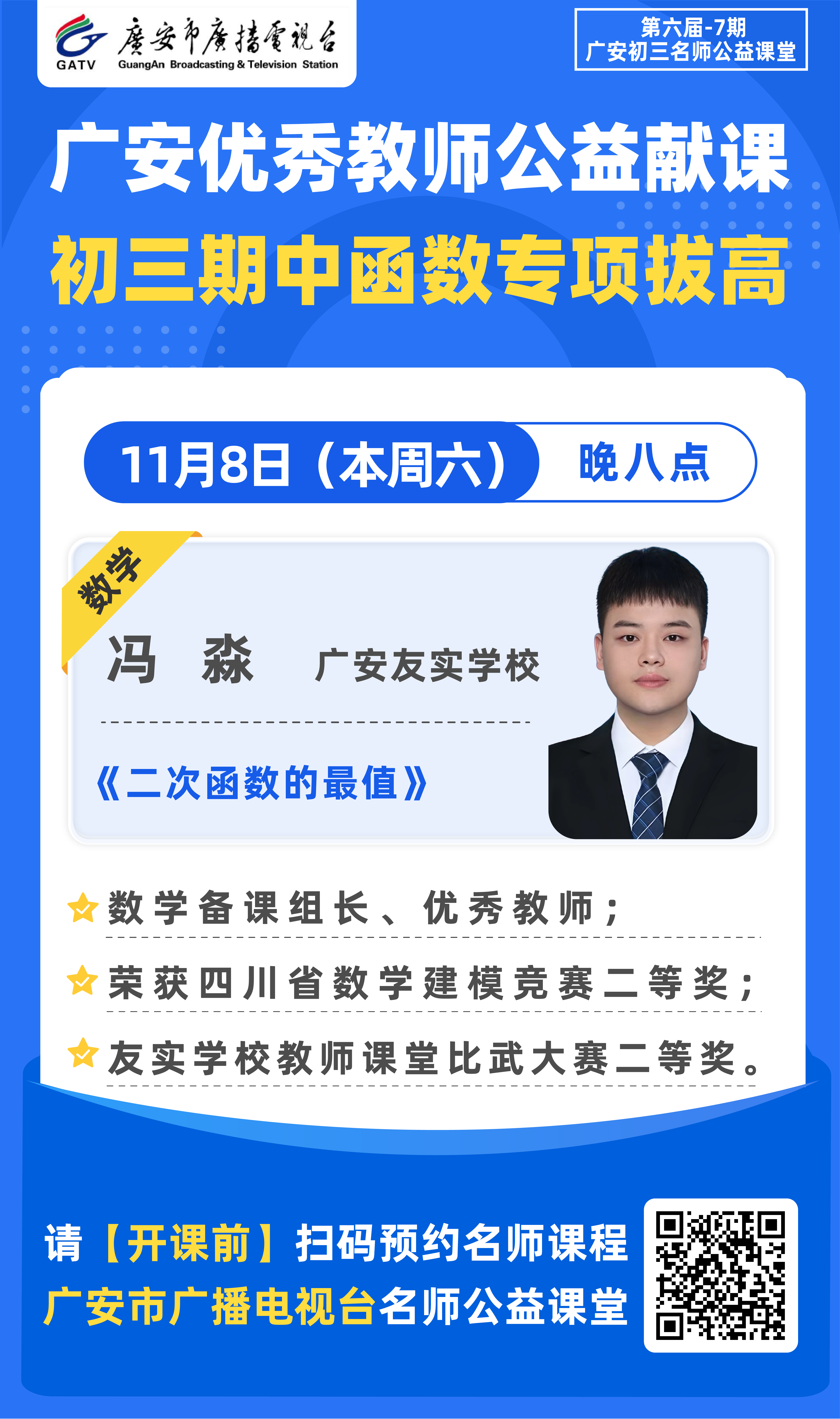 期待更多广安名师加入我们,一起做教育公益!欢迎更多学校,积极申请成为广安名师公益直播课堂的落地学校!咨询热线:骆老师13350227666
