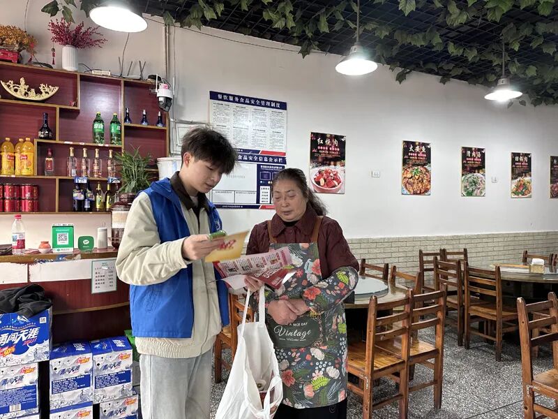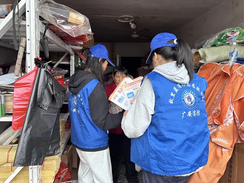 “故里蓝”志愿服务队走街串巷派发消防宣传单,耐心地向居民讲解冬春季节火灾预防的要点,包括家庭电器使用的安全事项、燃气泄漏的应急处理等实用知识。