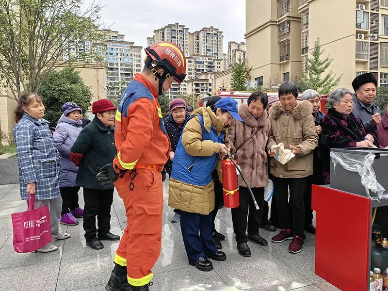 志愿者们现场演示灭火器的正确使用方法,并邀请居民参与实操演练,让居民在亲身体验中掌握灭火技能。