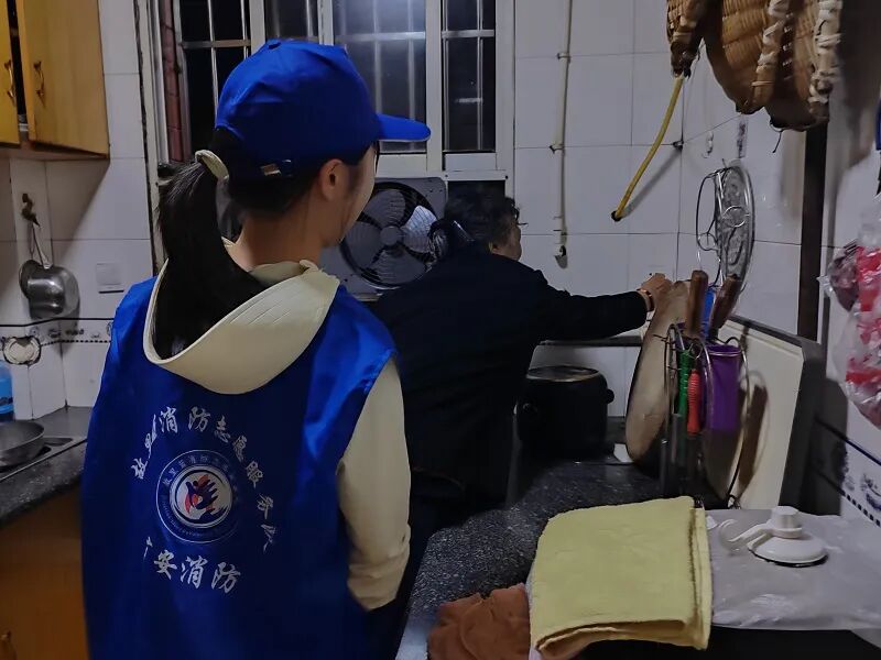 志愿者们走进村居针对独居老人开展“入户排查”活动,检查室内燃气、电器、线路等带电设备,并提醒老人注意用火用电安全。