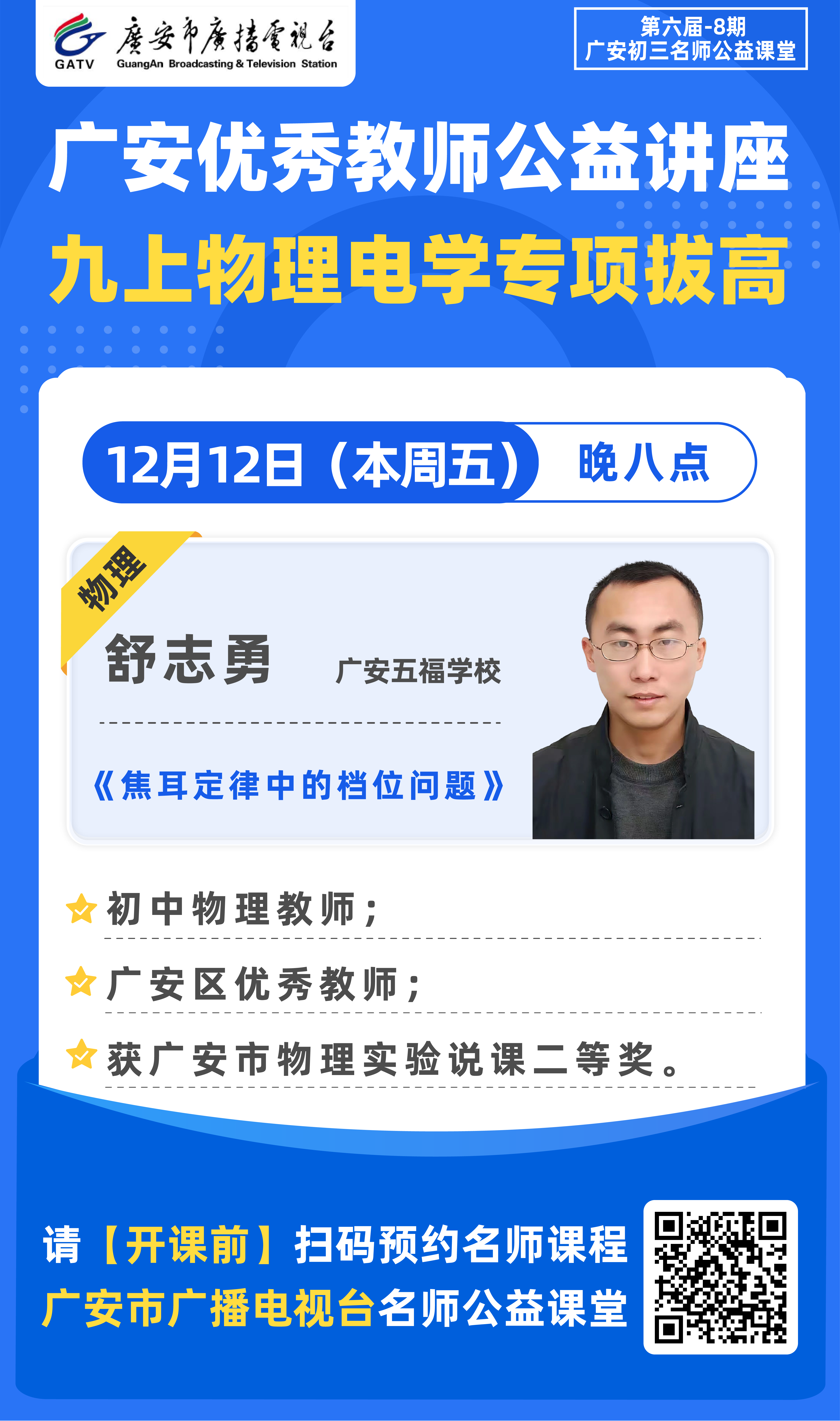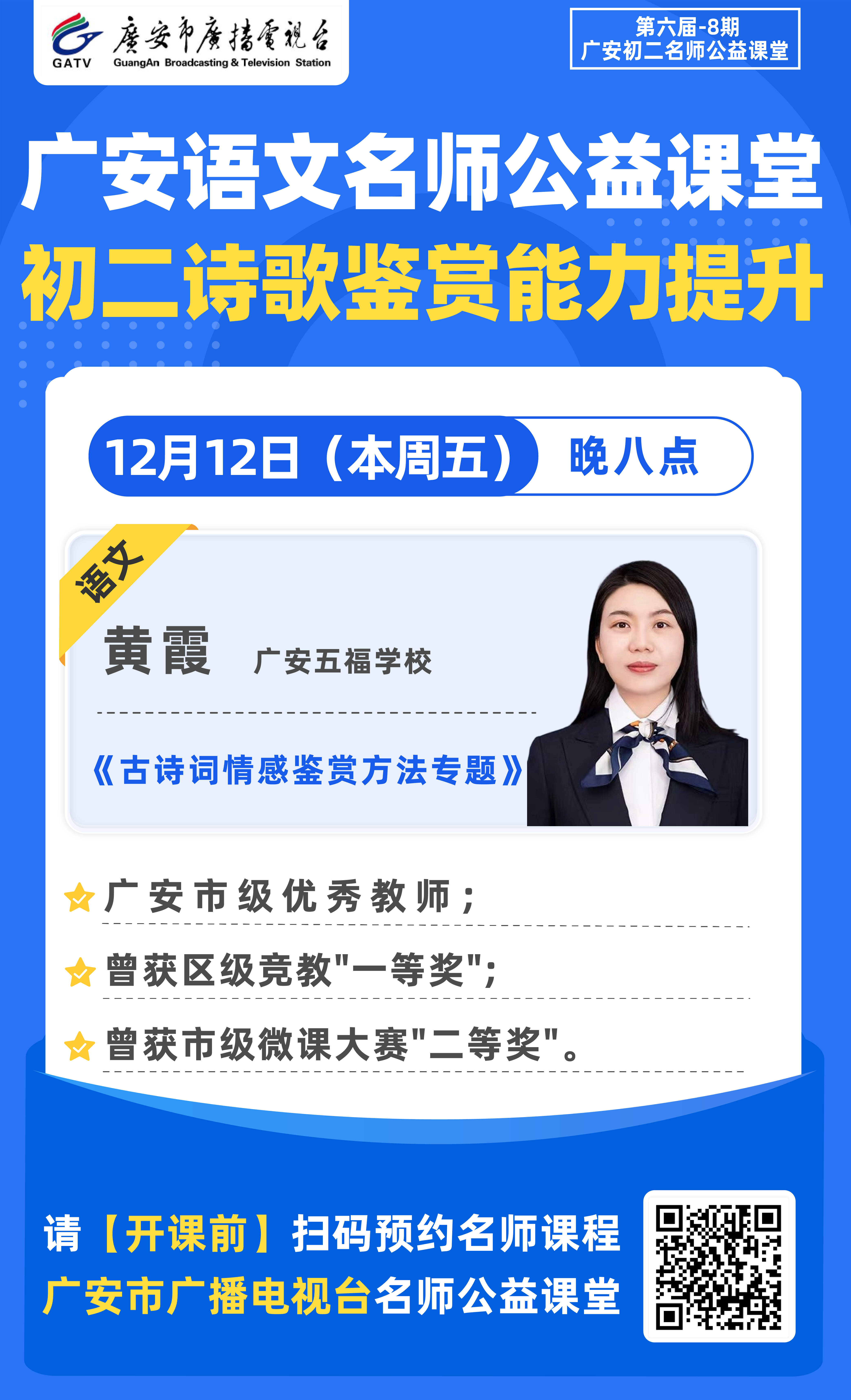 为助力广安学子共享更优质的教育,促进城乡教育均衡发展,广安市融媒体中心策划推出“广安名师公益课”大型教育公益直播活动,邀请广安义务教育阶段初级中学的教育家、名师及名师工作室团队成员作为公益直播主讲嘉宾,将广安市优质的各科名师教学课程,通过远程直播的方式,传播给广大的中小学生及家长和教育同仁,从而发挥名师辐射作用,促进教育均衡发展。