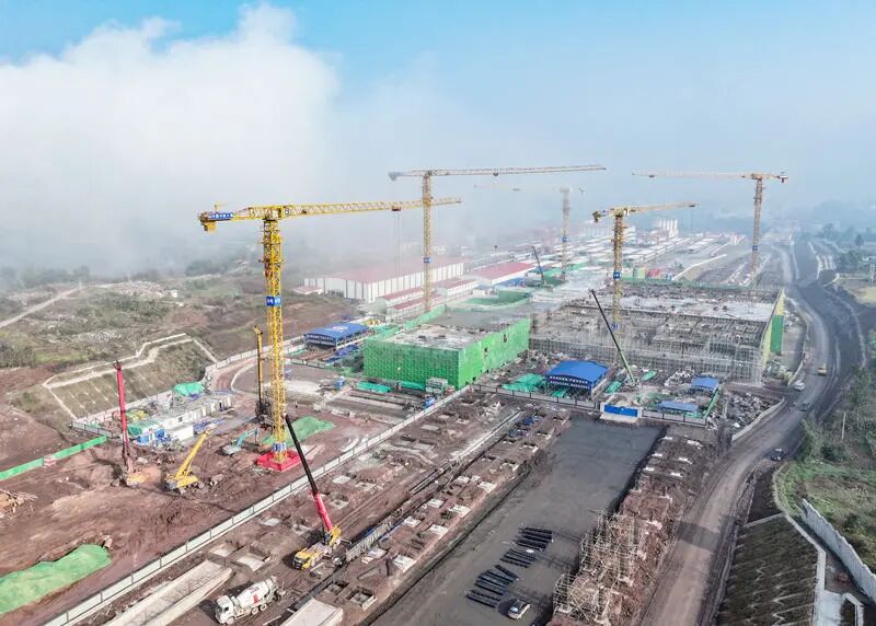 西渝高铁广安东站建设现场。广安市委宣传部供图