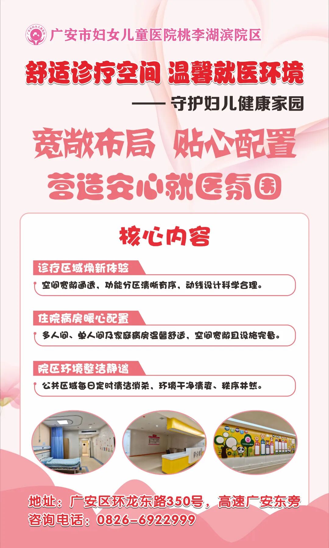 广安市妇女儿童医院桃李湖滨院区的暖心新举措!免费停车、平价食堂的双重福利。打造宽敞舒适的诊疗空间与温馨就医环境,从细节处守护妇儿健康。
