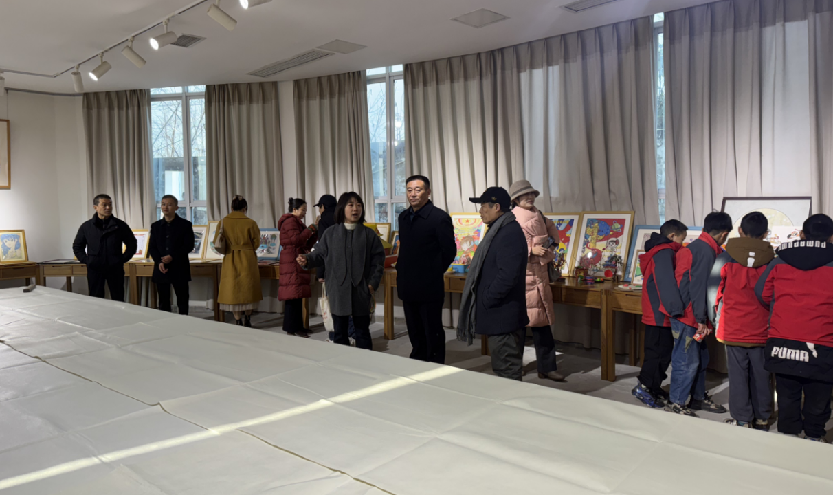 活动现场,嘉宾们步入展厅,“我心目中的家乡”主题画作引得众人驻足