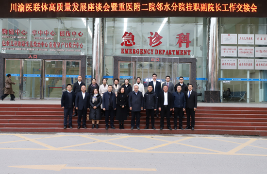 春潮涌动处,奋进正当时。1月23日下午,邻水县人民医院内暖意融融、情谊浓厚,川渝医联体高质量发展工作交流会暨重医附二院邻水分院挂职副院长工作交接会在此举行。重医附二院、邻水县人民政府、邻水县卫生健康局及邻水县人民医院等相关领导齐聚一堂,共同见证这场承载川渝医疗深情、续写协作新篇的重要盛会。