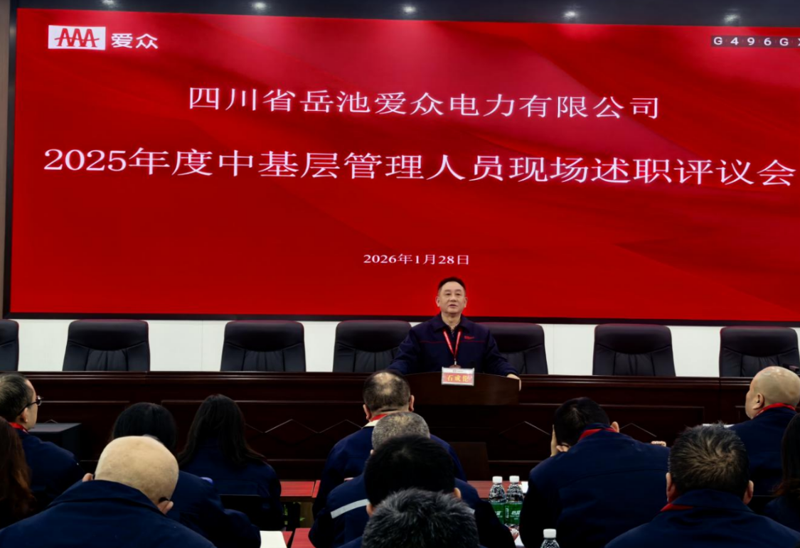 为全面检验2025年度中基层干部履职实效,统筹谋划2026年重点工作,1月28日,岳池爱众电力公司召开2025年度中基层管理人员现场述职评议会。