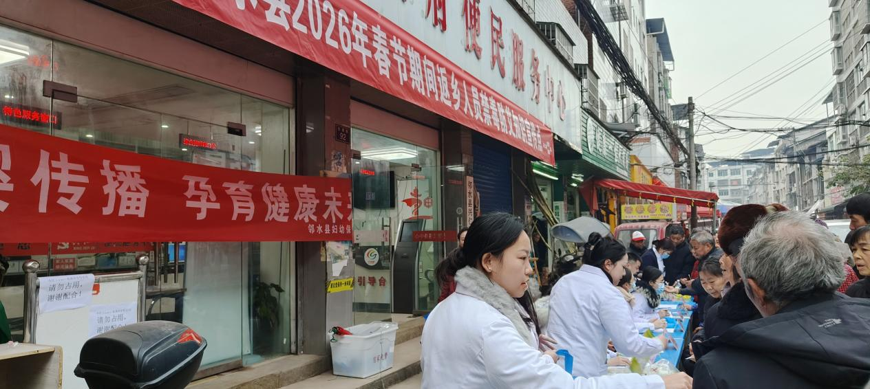 为切实提升辖区居民健康素养,增强群众自我保健意识,筑牢基层健康防线,邻水县兴仁镇经过精心策划,于1月29日联合县疾控中心、县人民医院、县妇幼保健院、镇中心卫生院等多家医疗卫生单位,在镇便民服务中心门口举行了内容丰富、形式多样的“健康守护”集中宣传服务活动。本次活动聚焦禁毒防艾、疾病义诊、妇幼健康等群众关切的热点问题,将优质的健康服务送到百姓“家门口”,用实际行动守护百姓健康。