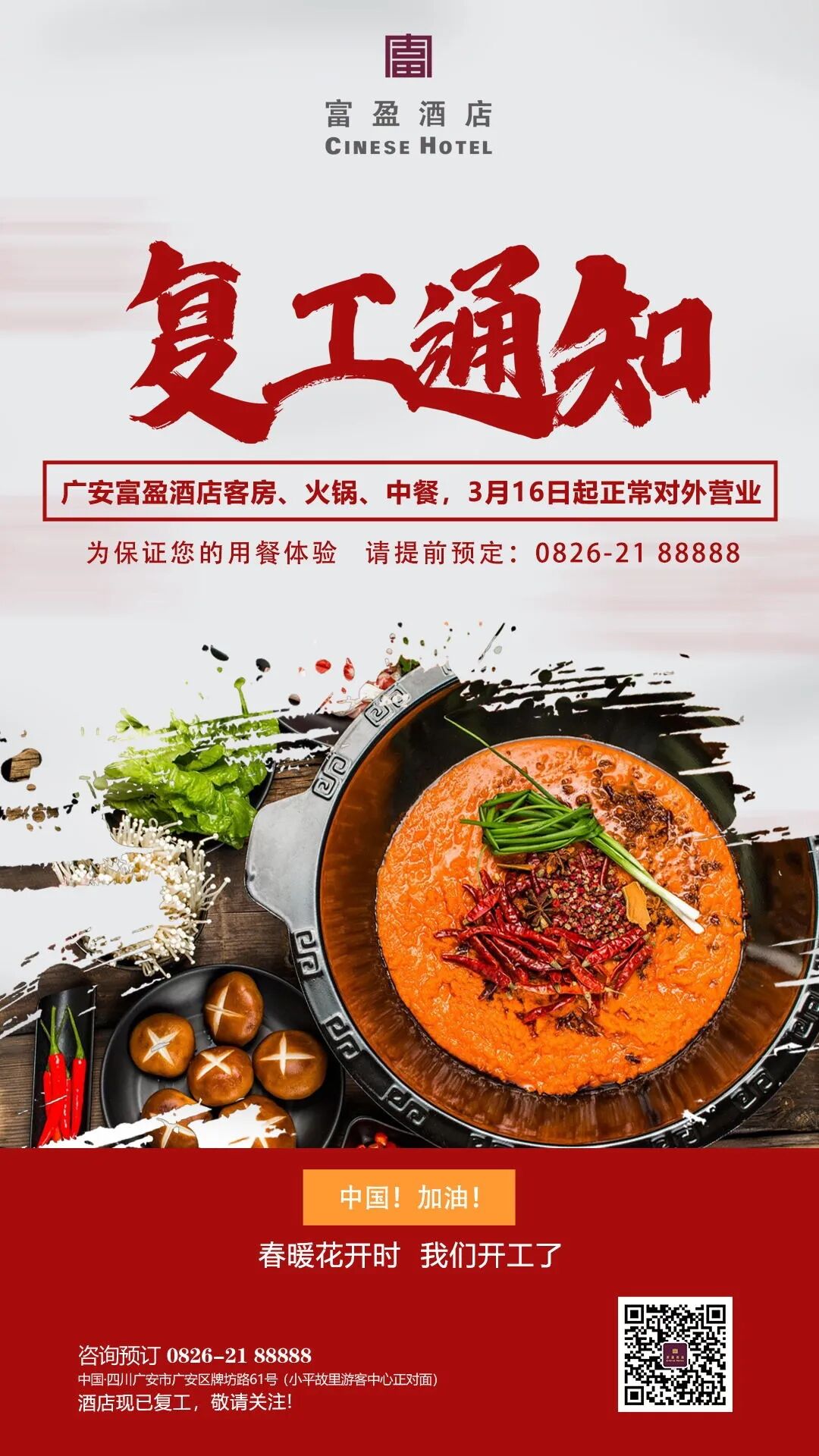 广安富盈酒店餐厅恢复营业啦~