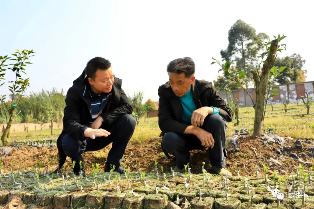在武胜县现代果园多功能系统研究所实验基地里,工人们正在养护前不久培育的果苗。受新冠肺炎疫情影响,果苗销售量不尽如人意。得知这一消息后,飞龙镇结合“走基层、解难题、抓落实”活动,组织镇村干部主动上门服务,帮助联系解决果苗销路问题。